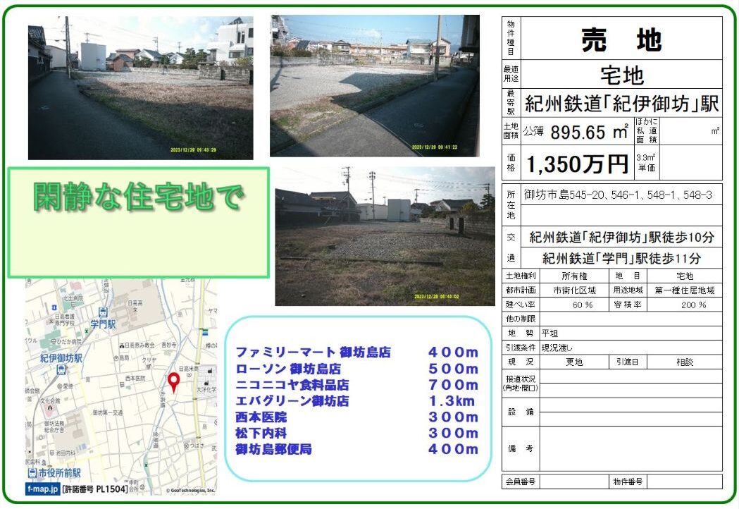 | 所在地 | 和歌山県御坊市島545-20、546-1、548-1、548-3 |